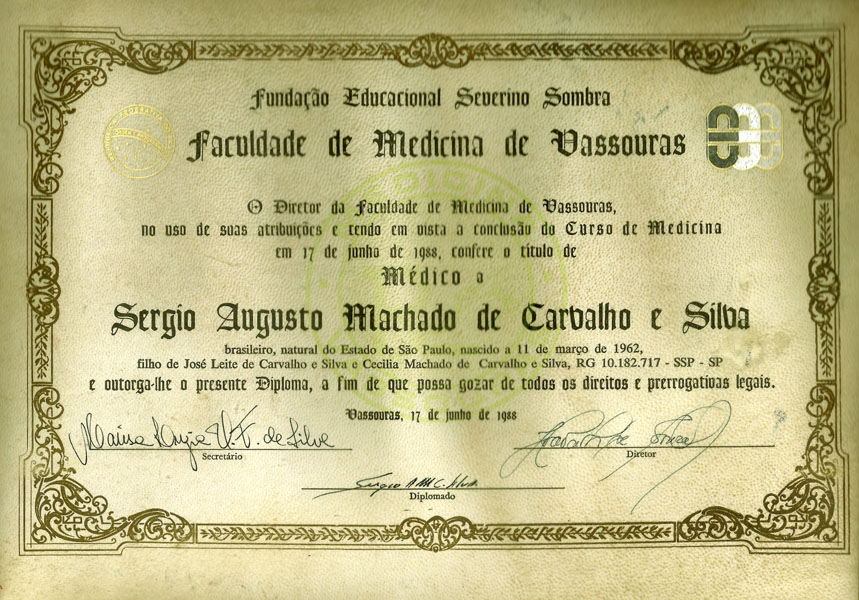 1988 – USS. Graduação em Medicina. Vassouras/RJ.