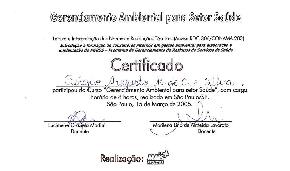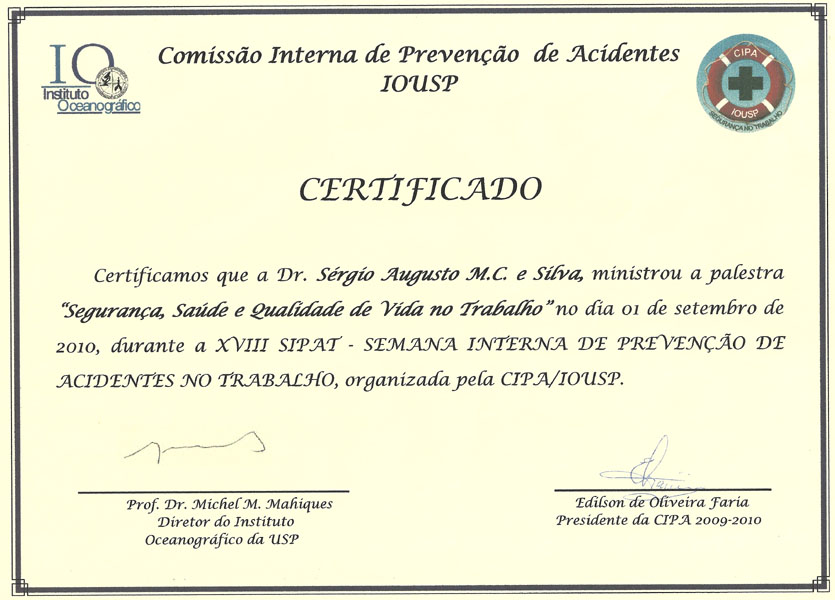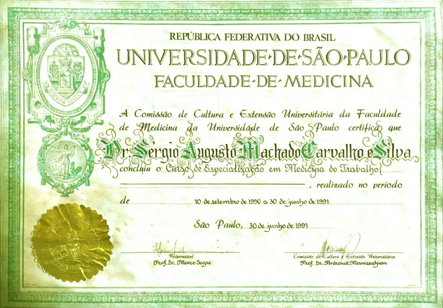 1991 – USP. Pós Graduação em Medicina do Trabalho. São Paulo/SP.
