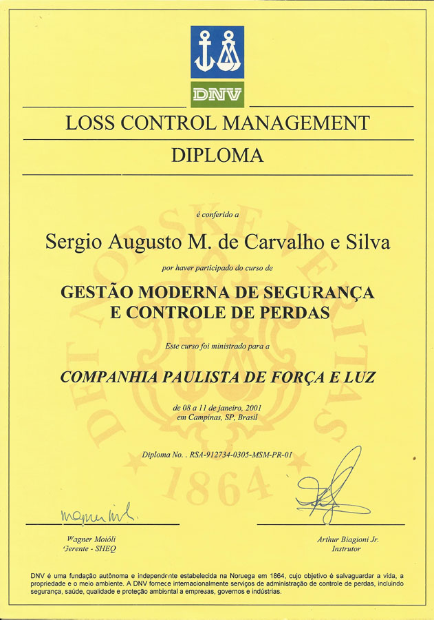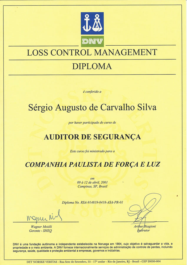 2001 – Det Norsk Veritas. Auditor de Segurança. Campinas/SP.