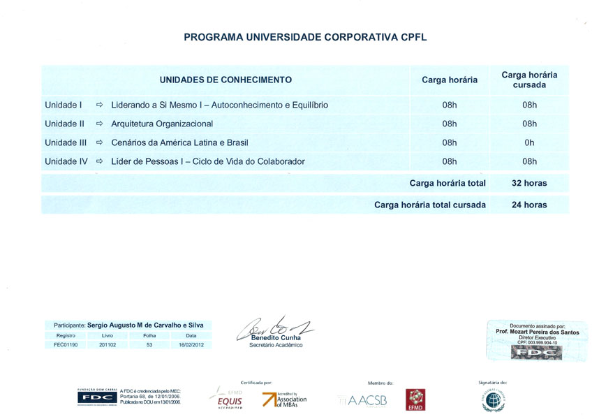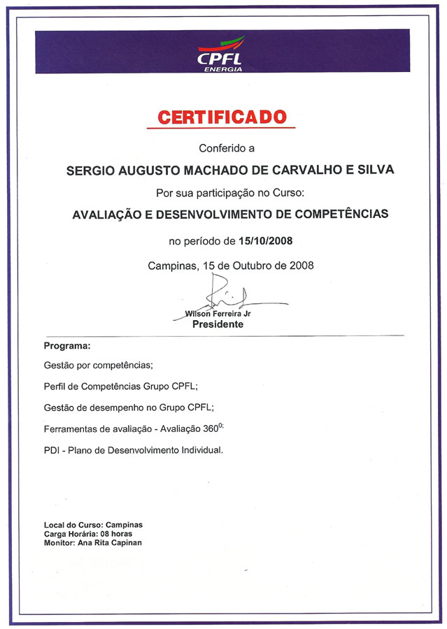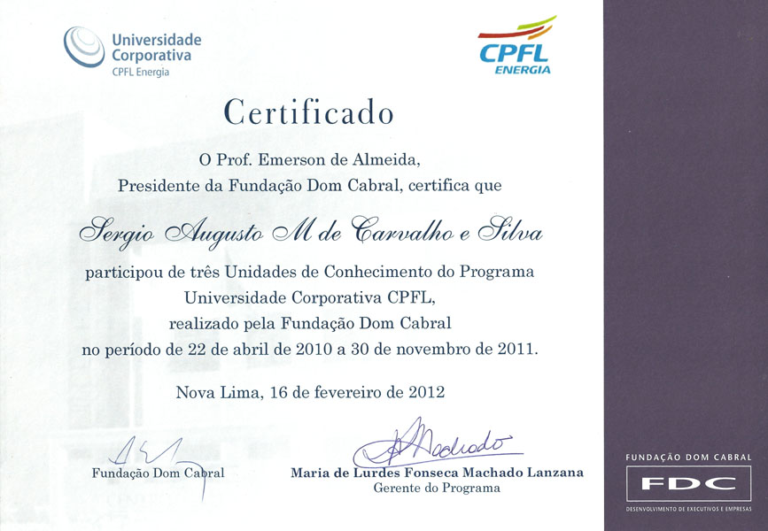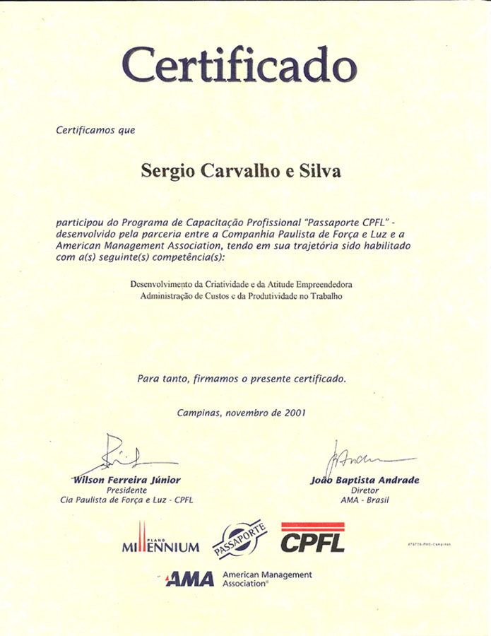 2001 – CPFL. Administração de custos e produtividade. Campinas/SP.