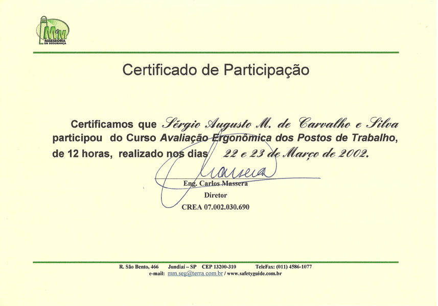 2002 – MM Segurança. Avaliação Ergonômica. Jundiaí/SP.