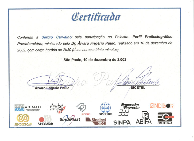 2002 – SICETEL. Perfil Profissiográfico Previdenciário. São Paulo/SP.