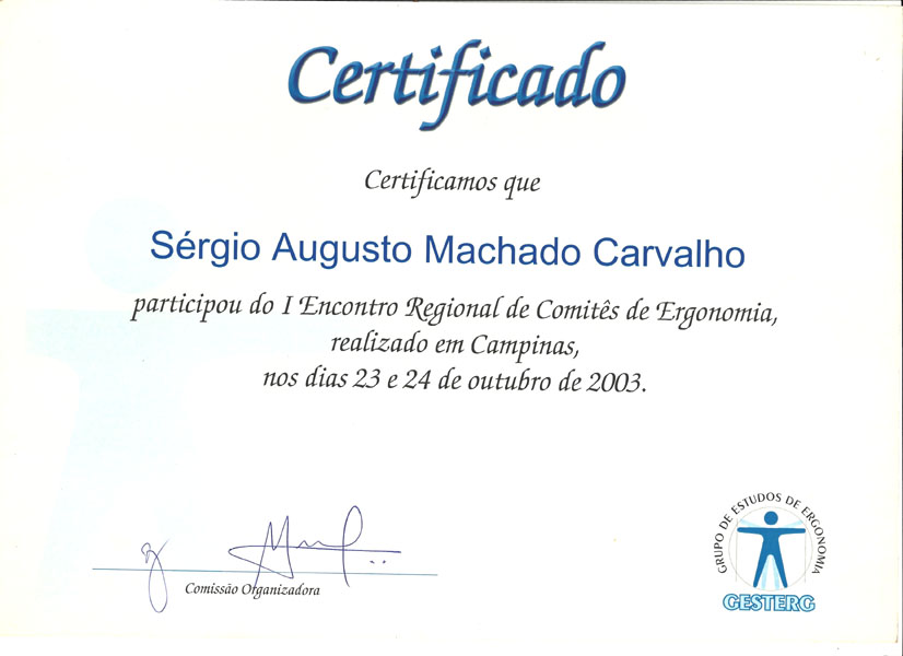 2003 – Gesterg. I Fórum Regional de Comitês de Ergonomia. Campinas/SP.
