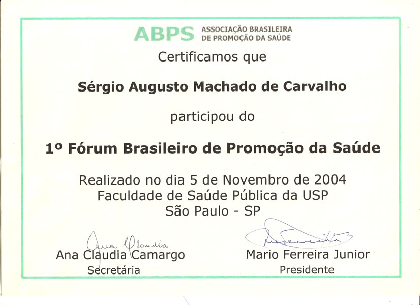 2004 – ABPS. I Fórum Brasileiro de Promoção da Saúde. São Paulo/SP.