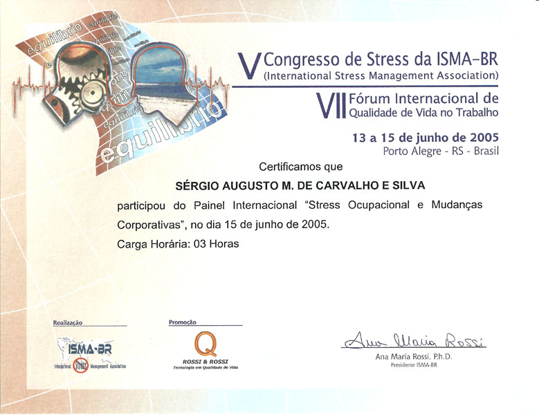 2005 – ISMA. Stress ocupacional e Mudanças corporativas. Porto Alegre/RS.