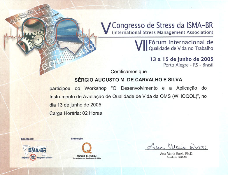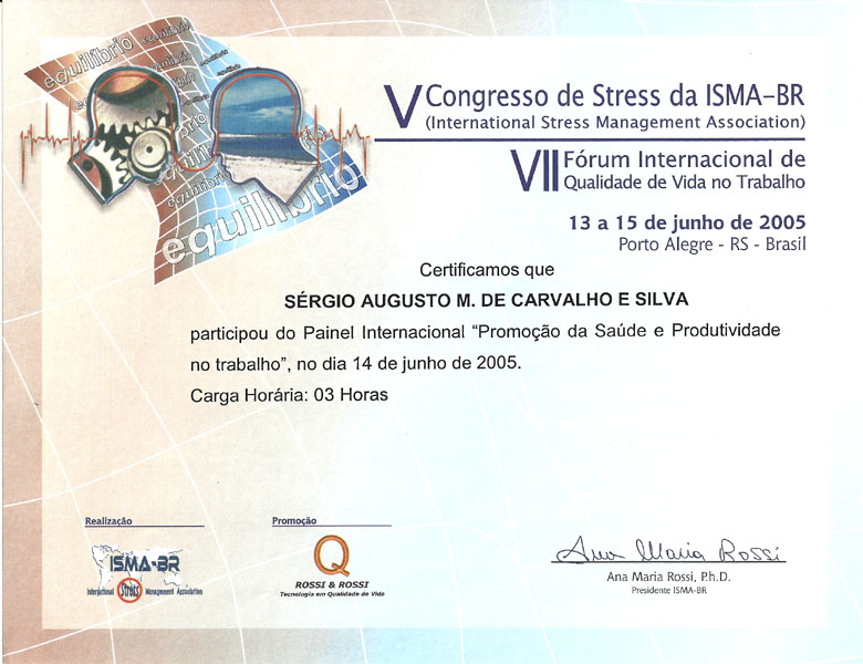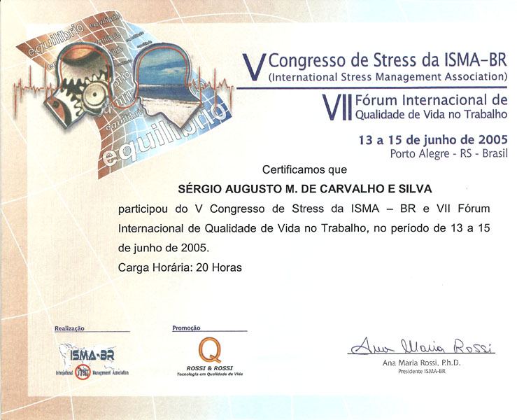 2005 – ISMA. V Congresso de Stress. Porto Alegre/RS.