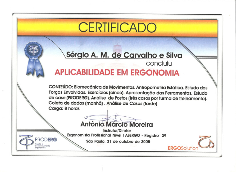2005 – Proderg. Aplicabilidade da Ergonomia.
