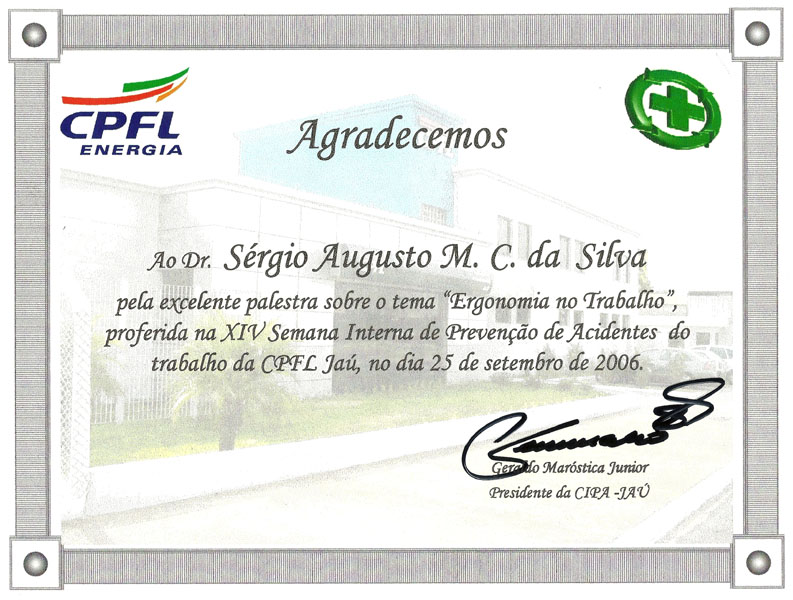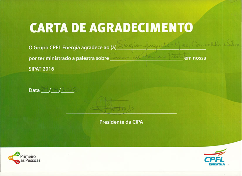 2016 – Agradecimento palestra – CIPA na Sede da CPFL.