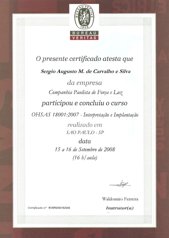 2008 – Bureau Veritas. Interpretação e implantação OHSAS 18001/2007.