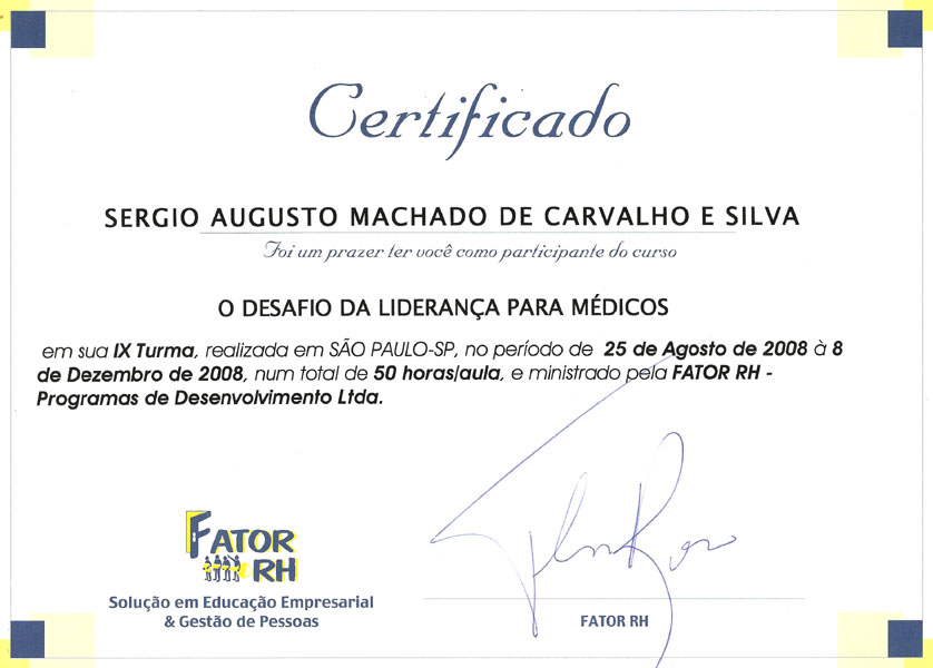 2008 – O desafio de Liderança para médicos. Fator RH – São Paulo.
