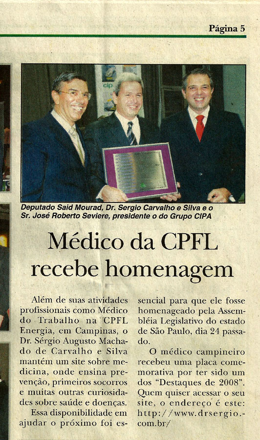 2009 – Março – Correio Popular Campinas. Prêmio Destaque 2009.