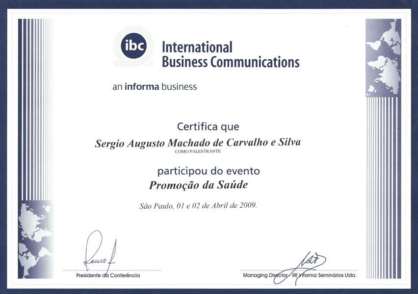 2009- Palestra – International Business Communications. Health Promotion.