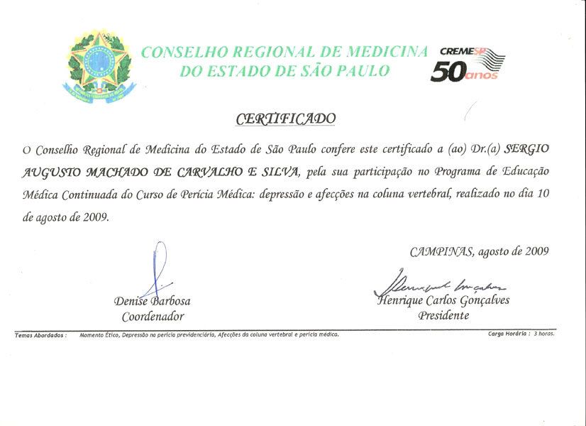 2009 – CRM. Depressão e Afecções de coluna.