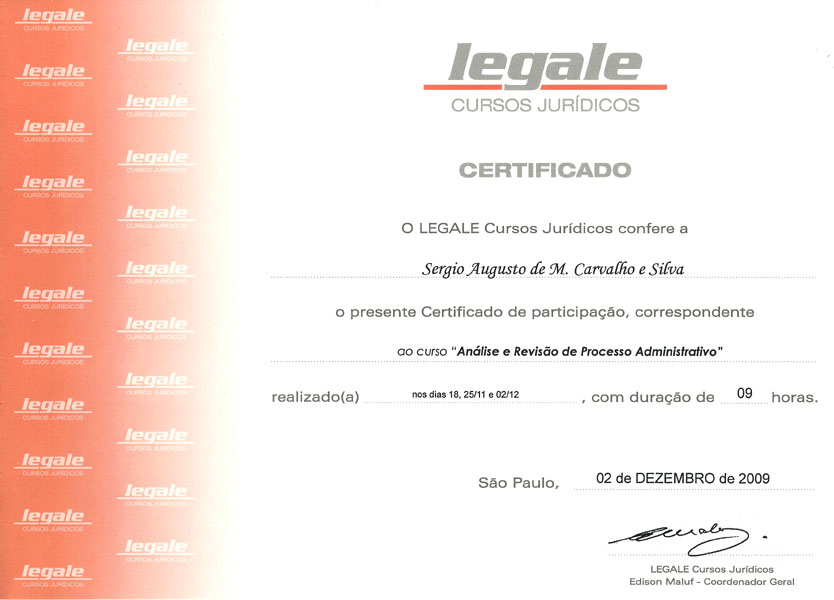 2009 – Legale. INSS – Análise e revisão de processos.