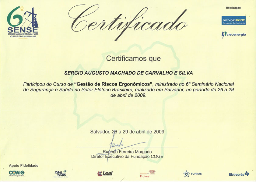 2009 – 6º SENSE. Gestão de Riscos Ergonômicos. Salvador – BA.