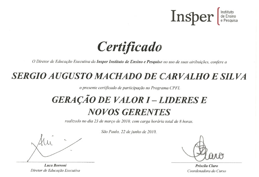 2010 – INSPER. Geração de Valor – Líderes.