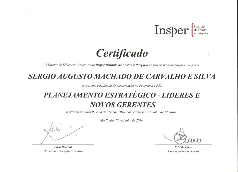 2010 – INSPER. Planejamento Estratégico.