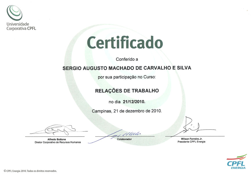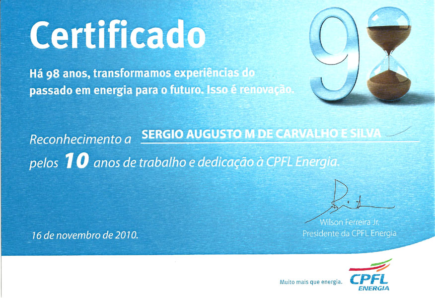 2010 – Homenagem por 10 anos no Grupo CPFL.