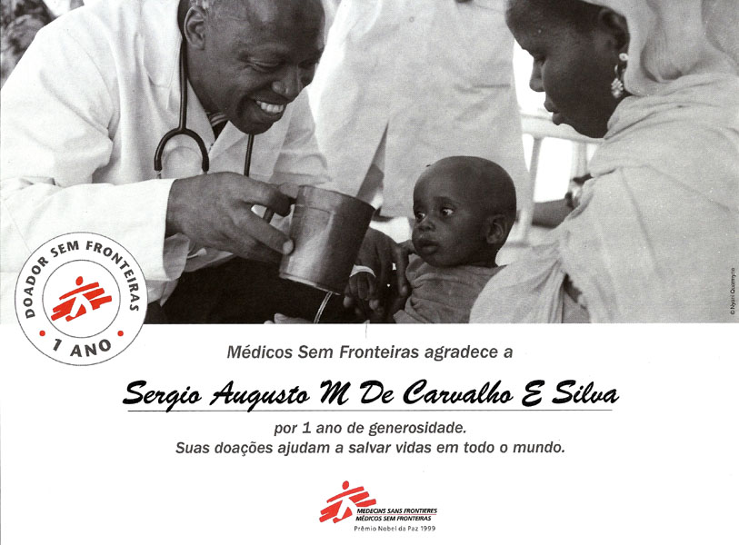 2014 – Agradecimento por contribuição aos Médicos Sem Fronteiras – MSF.