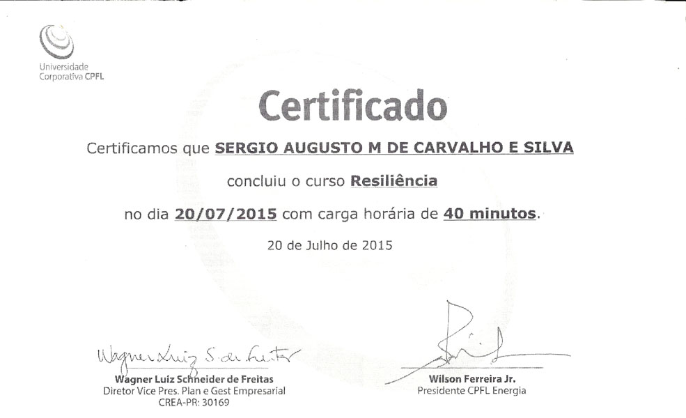 2015 – Curso de Resiliência. E-learning Universidade Corporativa.