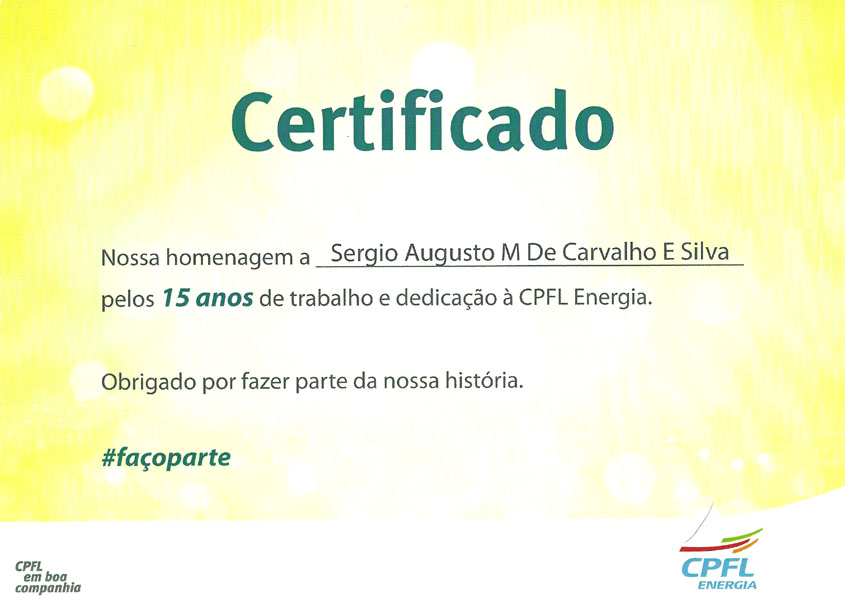 2015 – Homenagem por 15 anos no Grupo CPFL Energia.