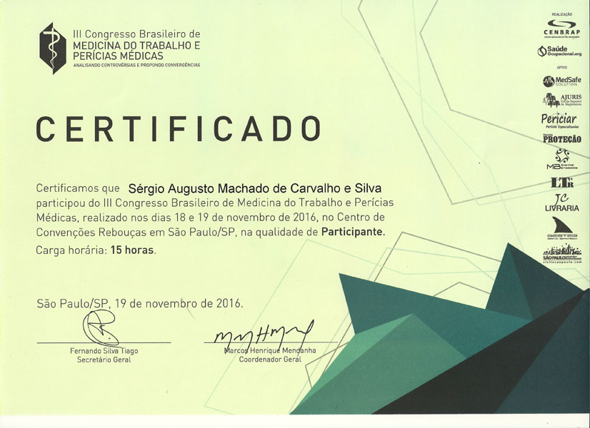 2016 – Palestra no III Congresso Brasileiro de Medicina do trabalho e Perícias Médicas.