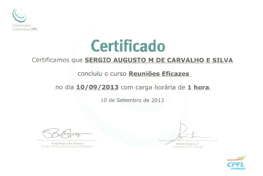 2013 – Curso Reuniões Eficazes. Universidade Corporativa.